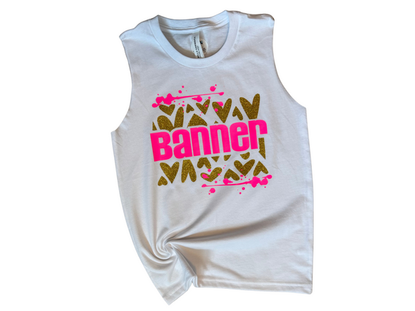 -The 2 colors you would like for camp name and hearts (please specify which you would like for hearts/camp name) Please refer to the color guide in the photos.